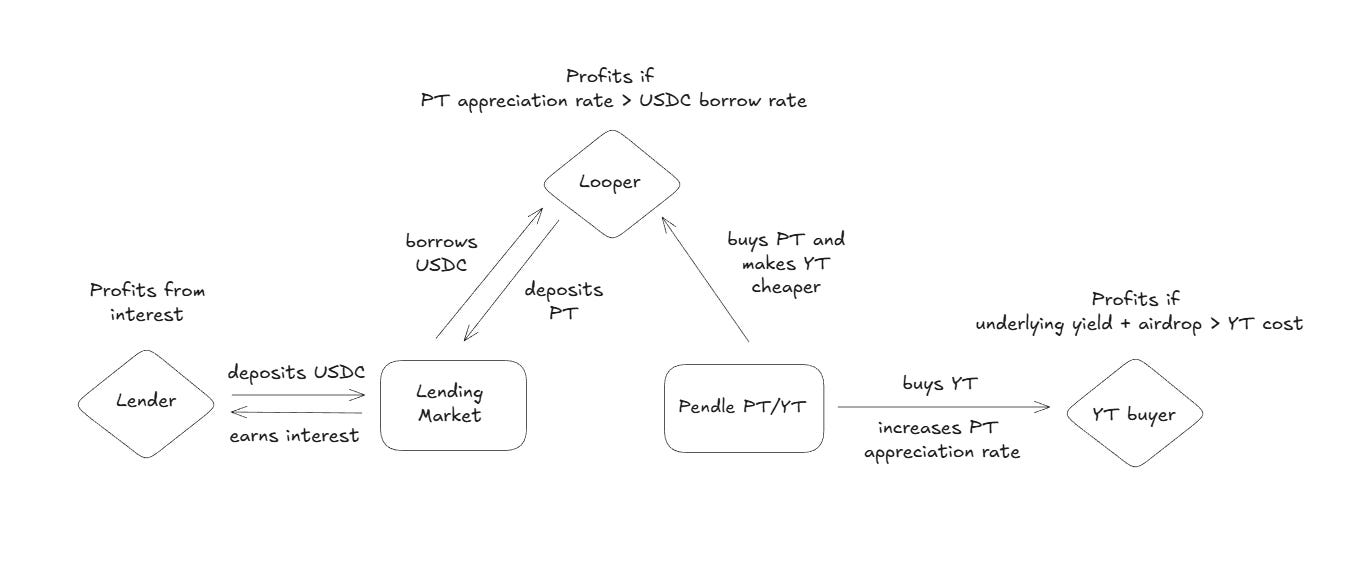 The looper profits if the PT appreciates at a higher rate than the borrow rate of his USDC