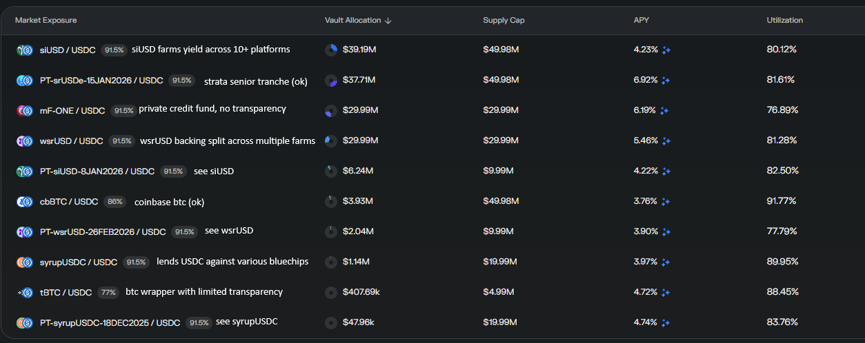 That’s a wide range of collateral you’re lending against just to earn 5.65% APY, some of which is exposed to other vaults and other platforms. By depositing in this vault, you’re taking on way more risk just to earn 2% above the RFR.