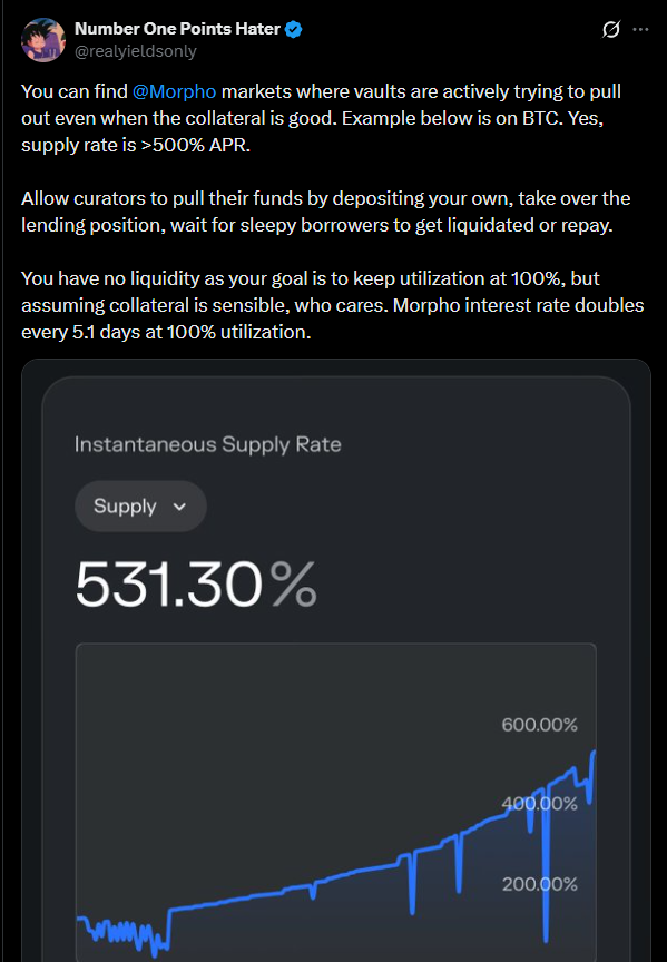 A simple example is a borrower on an isolated Morpho market who doesn’t realise that they have borrowed all the available liquidity, so they end up paying increasing amounts of interest due to the interest rate model.