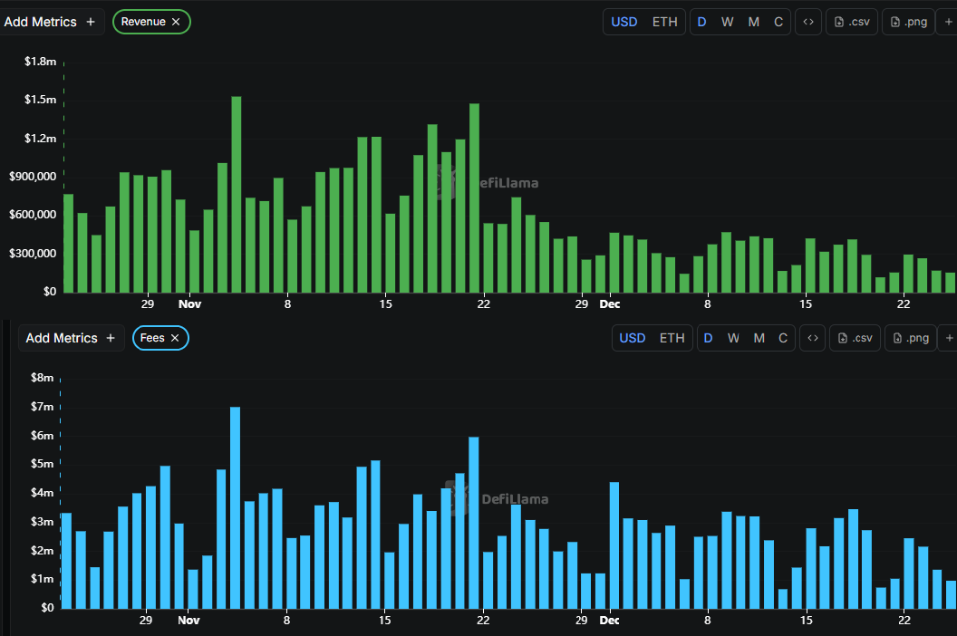 During private beta, all of Lighter's revenue went to LLP, but this stopped after private beta ended on 2 Oct. According to DefiLlama, Lighter has generated $39.4M from 23 Oct to 25 Dec. Averaging this out, we get $39.4M/64 = $616k per day. If we assume that this rate is roughly accurate from 3 Oct to 22 Oct, we get $12.3M of revenue over this period, giving us a total of $51.7M since private beta ended.