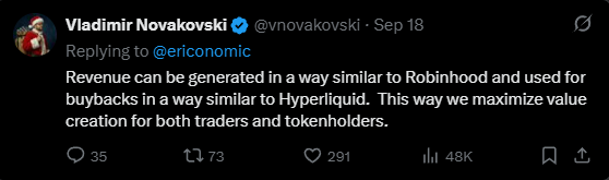 Vlad has publicly stated that Lighter revenue can be used for buybacks similar to Hyperliquid: