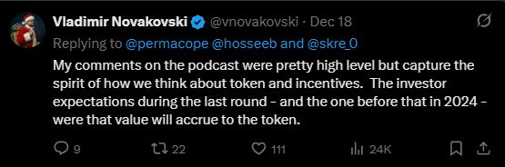 He has also stated that value will accrue to the token: